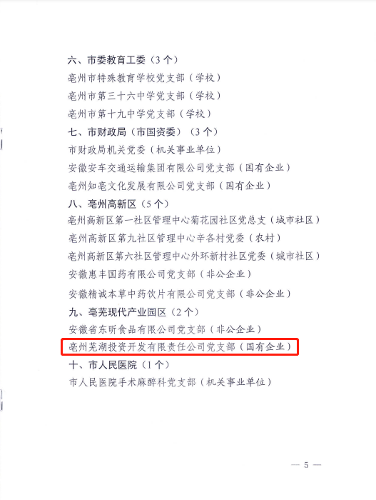 喜報(bào)丨亳蕪?fù)顿Y公司黨支部榮獲市級“五星基層黨組織”榮譽(yù)稱號