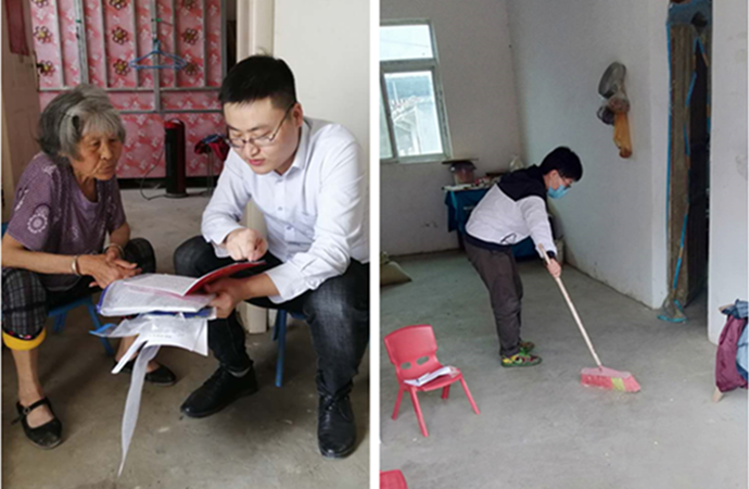 下午,幫扶人員分成三個(gè)小組,對(duì)剩余20戶幫扶對(duì)象進(jìn)行逐戶走訪,對(duì)照扶貧手冊(cè)逐項(xiàng)查看幫扶措施是否落實(shí),并對(duì)庭院較臟、衣物擺放較亂的,主動(dòng)搭把手進(jìn)行清掃、整理。