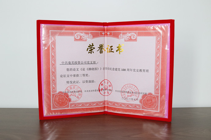 亳蕪?fù)顿Y公司黨支部榮獲紀念建黨100周年理論征文三等獎
